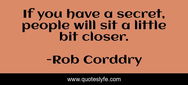 This page presents the quote "If you have a secret, people will sit a little bit closer.". Author of this quote is Rob Corddry. This quote is about secret, people,.