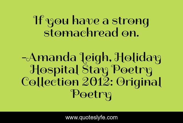 "Amanda Leigh, Holiday Hospital Stay Poetry Collection 2012: Original Poetry Quotes." Quoteslyfe.com, 2025. Sat. 06 Dec. 2025. <https://www.quoteslyfe.com/quote/If-you-have-a-strong-stomachread-on-94519>.