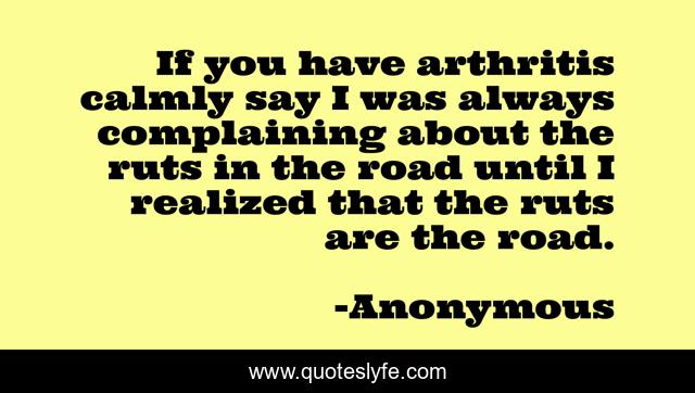 This page presents the quote "If you have arthritis calmly say I was always complaining about the ruts in the road until I realized that the ruts are the road.". Author of this quote is Anonymous. .