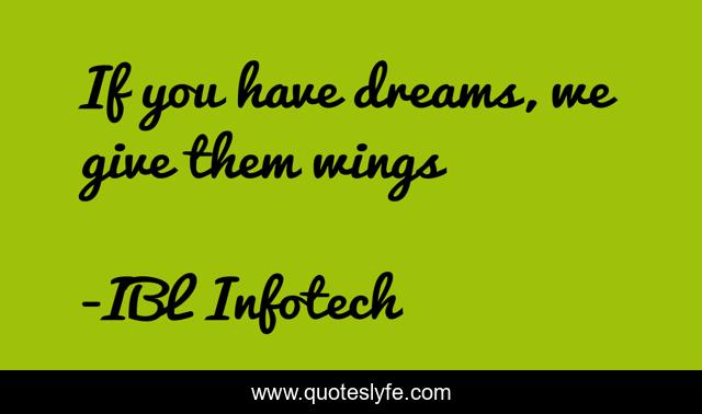 This page presents the quote "If you have dreams, we give them wings". Author of this quote is IBL Infotech. This quote is about enthusiasm, business, inspirational, punchline,.