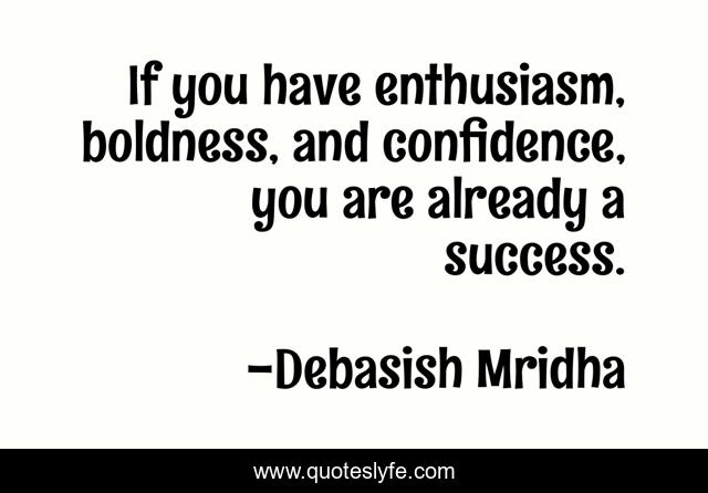 This page presents the quote "If you have enthusiasm, boldness, and confidence, you are already a success.". Author of this quote is Debasish Mridha. This quote is about life, love, knowledge, inspirational, intelligence, philosophy, wisdom, quotes, affection,.