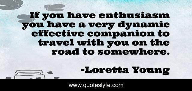 This page presents the quote "If you have enthusiasm you have a very dynamic effective companion to travel with you on the road to somewhere.". Author of this quote is Loretta Young. .