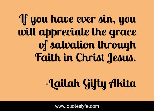 This page presents the quote "If you have ever sin, you will appreciate the grace of salvation through Faith in Christ Jesus.". Author of this quote is Lailah Gifty Akita. This quote is about jesus-christ, faith, christian, inspirational, enthusiasm, salvation, sin, sinner,.