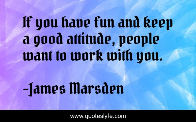 This page presents the quote "If you have fun and keep a good attitude, people want to work with you.". Author of this quote is James Marsden. This quote is about fun, good, work,.