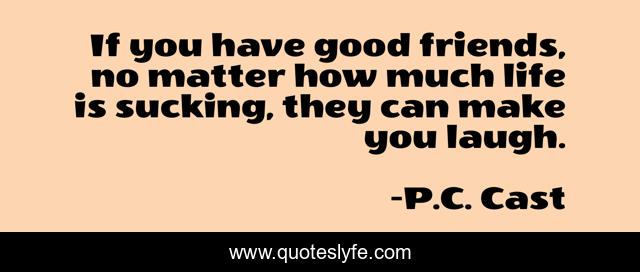This page presents the quote "If you have good friends, no matter how much life is sucking, they can make you laugh.". Author of this quote is P.C. Cast. .