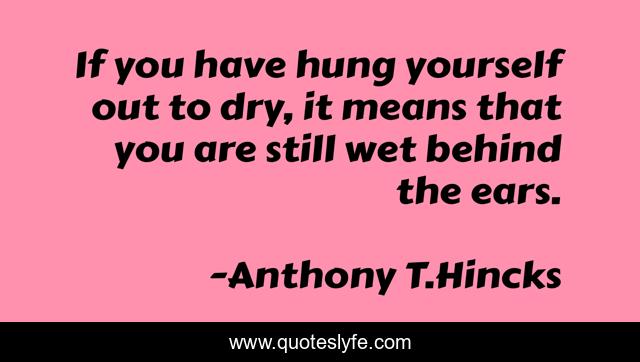 This page presents the quote "If you have hung yourself out to dry, it means that you are still wet behind the ears.". Author of this quote is Anthony T.Hincks. This quote is about life, philosophy, young, yourself, out-to-dry, nieve, wet-behind-the-ears,.
