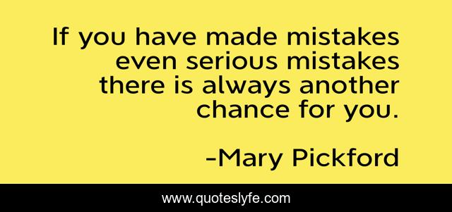 This page presents the quote "If you have made mistakes even serious mistakes there is always another chance for you.". Author of this quote is Mary Pickford. This quote is about failures, mistakes,.