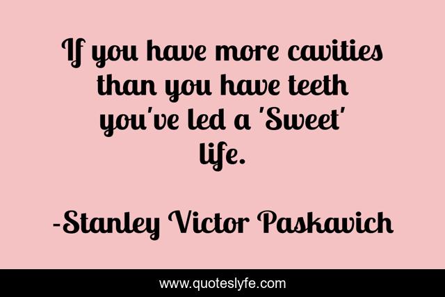 This page presents the quote "If you have more cavities than you have teeth you've led a 'Sweet' life.". Author of this quote is Stanley Victor Paskavich. .