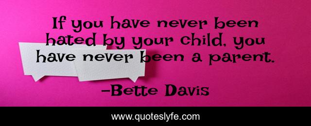 This page presents the quote "If you have never been hated by your child, you have never been a parent.". Author of this quote is Bette Davis. .