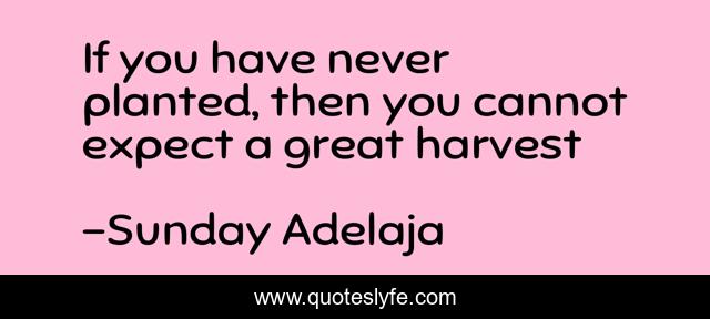 This page presents the quote "If you have never planted, then you cannot expect a great harvest". Author of this quote is Sunday Adelaja. This quote is about prosperity, great, wealth, money, riches, reality-of-life, planted, expect, truthof-life,.