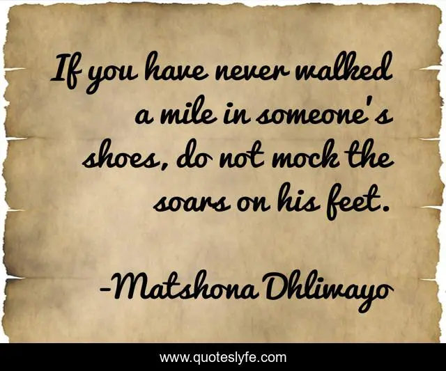 "Matshona Dhliwayo Quotes." Quoteslyfe.com, 2025. Mon. 08 Dec. 2025. <https://www.quoteslyfe.com/quote/If-you-have-never-walked-a-mile-58216>.