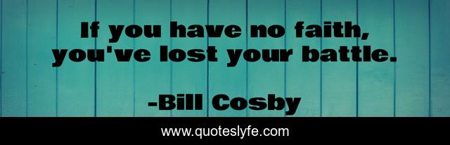 This page presents the quote "If you have no faith, you've lost your battle.". Author of this quote is Bill Cosby. This quote is about battle, lost,.