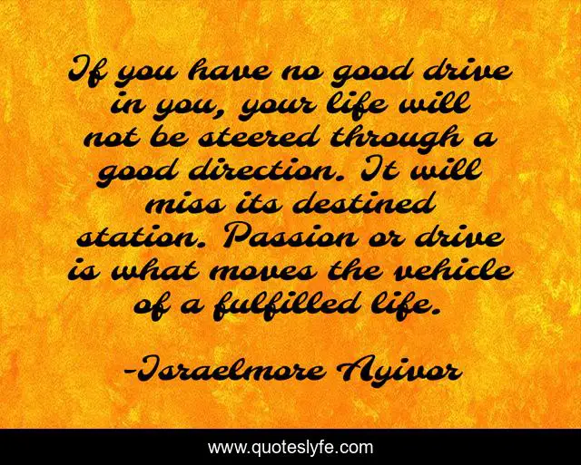 If you have no good drive in you, your life will not be steered through a good direction. It will miss its destined station. Passion or drive is what moves the vehicle of a fulfilled life.