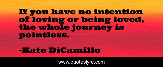 This page presents the quote "If you have no intention of loving or being loved, the whole journey is pointless.". Author of this quote is Kate DiCamillo. .