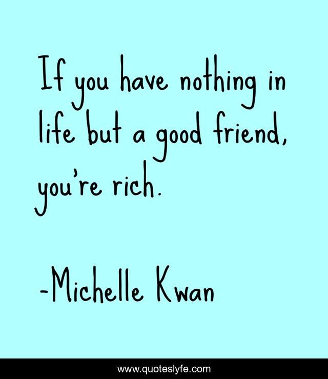 This page presents the quote "If you have nothing in life but a good friend, you're rich.". Author of this quote is Michelle Kwan. This quote is about life, friend,.