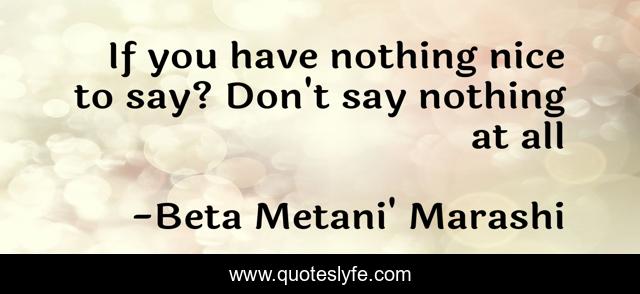 This page presents the quote "If you have nothing nice to say? Don't say nothing at all". Author of this quote is Beta Metani' Marashi. .