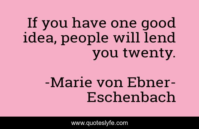 This page presents the quote "If you have one good idea, people will lend you twenty.". Author of this quote is Marie von Ebner-Eschenbach. This quote is about good, people,.