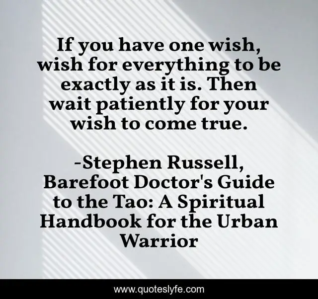 "Stephen Russell, Barefoot Doctor's Guide to the Tao: A Spiritual Handbook for the Urban Warrior Quotes." Quoteslyfe.com, 2025. Fri. 05 Dec. 2025. <https://www.quoteslyfe.com/quote/If-you-have-one-wish-wish-for-234141>.