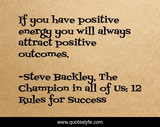 "Steve Backley, The Champion in all of Us: 12 Rules for Success Quotes." Quoteslyfe.com, 2025. Tue. 09 Dec. 2025. <https://www.quoteslyfe.com/quote/If-you-have-positive-energy-you-will-32448>.