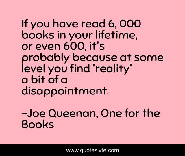 This page presents the quote "If you have read 6, 000 books in your lifetime, or even 600, it's probably because at some level you find 'reality' a bit of a disappointment.". Author of this quote is Joe Queenan, One for the Books. This quote is about reading-books, books, reading,.