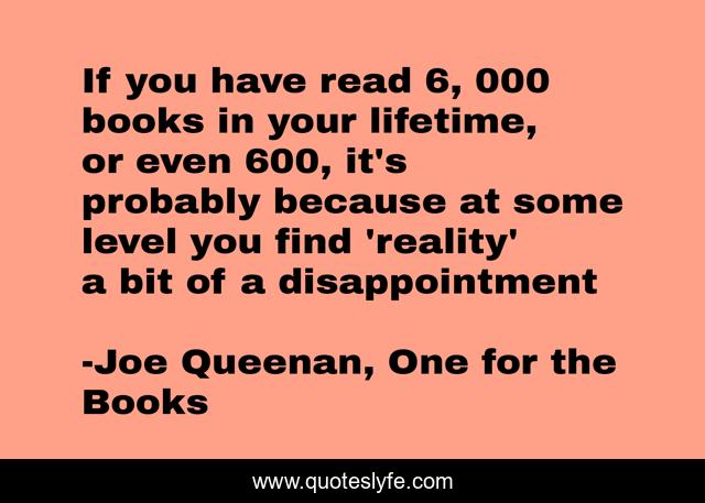 This page presents the quote "If you have read 6, 000 books in your lifetime, or even 600, it's probably because at some level you find 'reality' a bit of a disappointment". Author of this quote is Joe Queenan, One for the Books. This quote is about books, reality,.