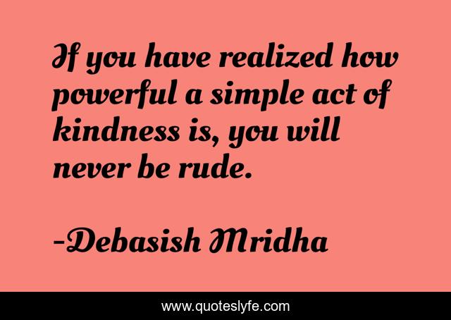 If you have realized how powerful a simple act of kindness is, you will never be rude.