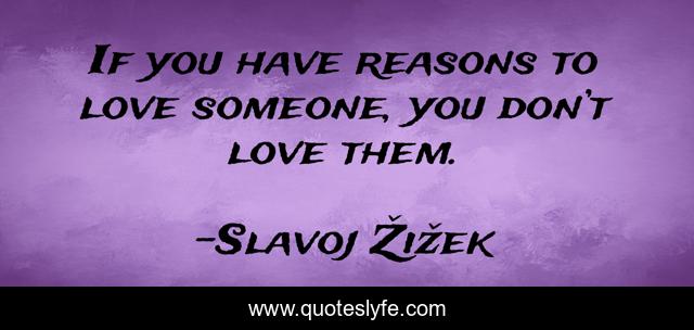 "Slavoj Žižek Quotes." Quoteslyfe.com, 2025. Mon. 08 Dec. 2025. <https://www.quoteslyfe.com/quote/If-you-have-reasons-to-love-someone-1341>.