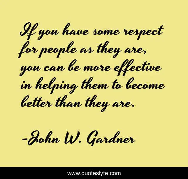 This page presents the quote "If you have some respect for people as they are, you can be more effective in helping them to become better than they are.". Author of this quote is John W. Gardner. This quote is about better, people,.