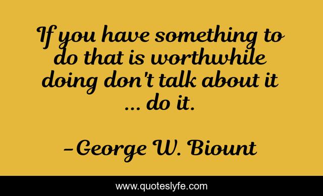 This page presents the quote "If you have something to do that is worthwhile doing don't talk about it ... do it.". Author of this quote is George W. Biount. This quote is about going, getting,.