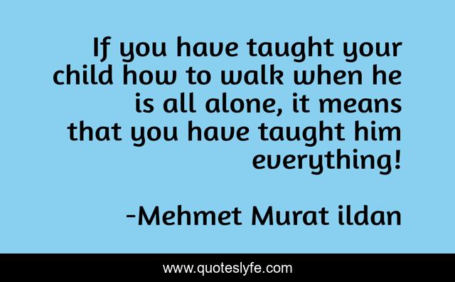This page presents the quote "If you have taught your child how to walk when he is all alone, it means that you have taught him everything!". Author of this quote is Mehmet Murat ildan. .