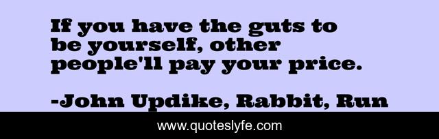 This page presents the quote "If you have the guts to be yourself, other people'll pay your price.". Author of this quote is John Updike, Rabbit, Run. This quote is about enthusiasm, inspirational,.