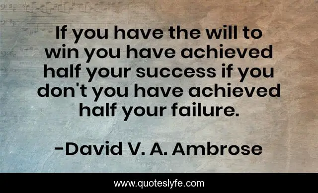 This page presents the quote "If you have the will to win you have achieved half your success if you don't you have achieved half your failure.". Author of this quote is David V. A. Ambrose. .