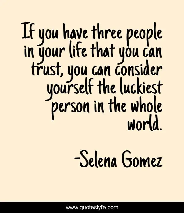 This page presents the quote "If you have three people in your life that you can trust, you can consider yourself the luckiest person in the whole world.". Author of this quote is Selena Gomez. This quote is about world, life, yourself,.
