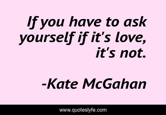This page presents the quote "If you have to ask yourself if it's love, it's not.". Author of this quote is Kate McGahan. This quote is about true-love, love, question, affection,.