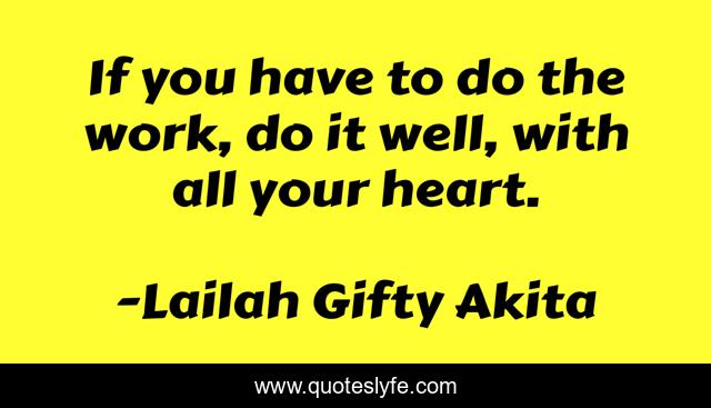 This page presents the quote "If you have to do the work, do it well, with all your heart.". Author of this quote is Lailah Gifty Akita. This quote is about hard-work, work, excellence, inspirational, self-motivation, enthusiasm,.