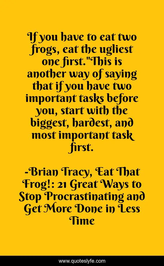 "Brian Tracy, Eat That Frog!: 21 Great Ways to Stop Procrastinating and Get More Done in Less Time Quotes." Quoteslyfe.com, 2025. Mon. 08 Dec. 2025. <https://www.quoteslyfe.com/quote/If-you-have-to-eat-two-frogs-189226>.