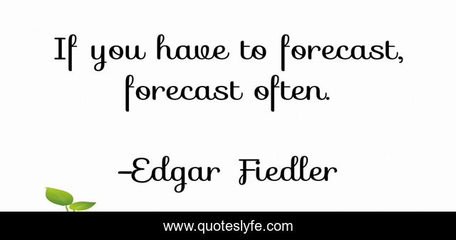 This page presents the quote "If you have to forecast, forecast often.". Author of this quote is Edgar Fiedler. This quote is about often, forecast,.