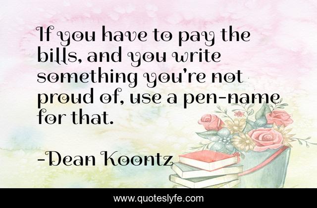 This page presents the quote "If you have to pay the bills, and you write something you're not proud of, use a pen-name for that.". Author of this quote is Dean Koontz. .