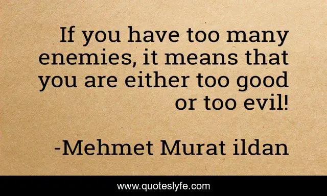 This page presents the quote "If you have too many enemies, it means that you are either too good or too evil!". Author of this quote is Mehmet Murat ildan. .