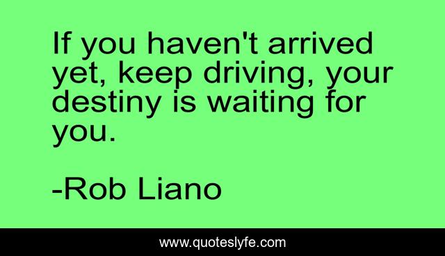 This page presents the quote "If you haven't arrived yet, keep driving, your destiny is waiting for you.". Author of this quote is Rob Liano. This quote is about discipline, faith, confidence, love, destiny, success, excuses, effort, life,.