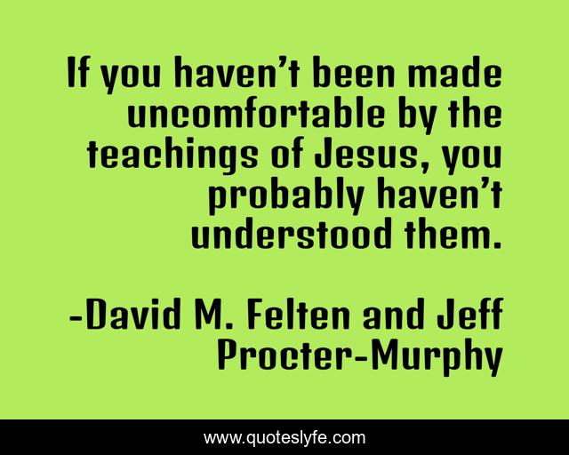 This page presents the quote "If you haven’t been made uncomfortable by the teachings of Jesus, you probably haven’t understood them.". Author of this quote is David M. Felten and Jeff Procter-Murphy. .