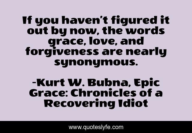 This page presents the quote "If you haven’t figured it out by now, the words grace, love, and forgiveness are nearly synonymous.". Author of this quote is Kurt W. Bubna, Epic Grace: Chronicles of a Recovering Idiot. This quote is about forgiveness, love, grace, affection,.