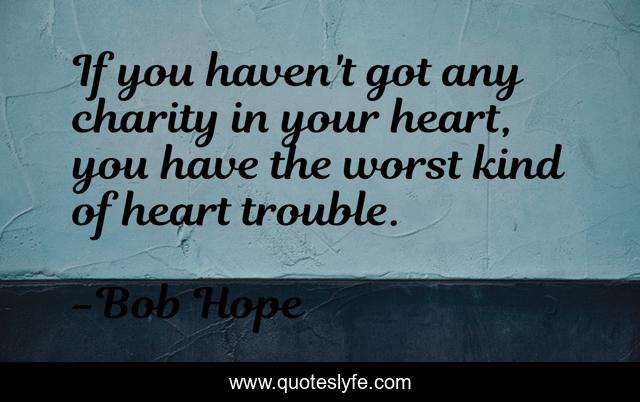 This page presents the quote "If you haven't got any charity in your heart, you have the worst kind of heart trouble.". Author of this quote is Bob Hope. This quote is about heart, charity,.