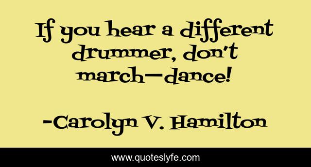 This page presents the quote "If you hear a different drummer, don’t march—dance!". Author of this quote is Carolyn V. Hamilton. This quote is about dance, humor, inspiration,.