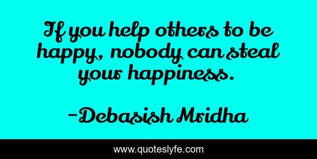 This page presents the quote "If you help others to be happy, nobody can steal your happiness.". Author of this quote is Debasish Mridha. This quote is about miraboli, oscar-wilde, philosophy, debasish-mridha, tagore, help-others, quotes, buddha, debasish-mridha-md,.