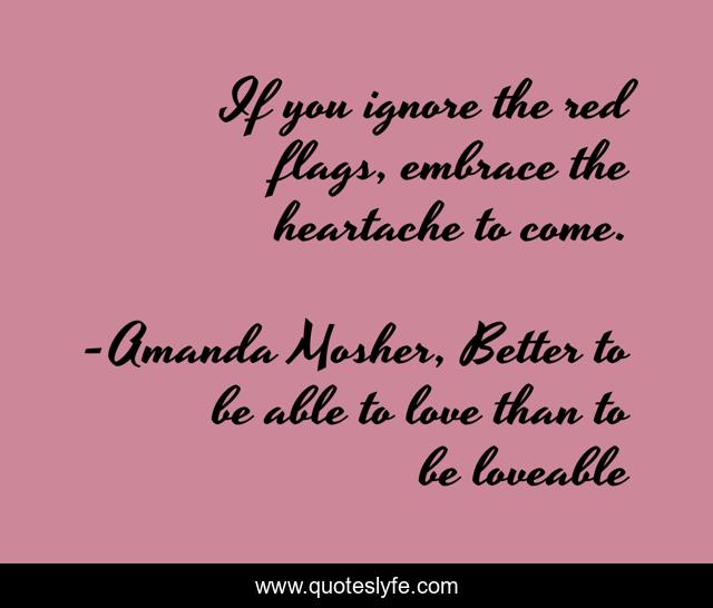 "Amanda Mosher, Better to be able to love than to be loveable Quotes." Quoteslyfe.com, 2025. Fri. 05 Dec. 2025. <https://www.quoteslyfe.com/quote/If-you-ignore-the-red-flags-embrace-215489>.
