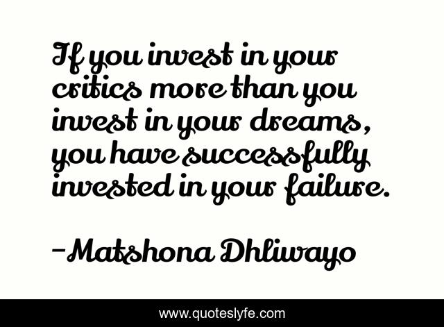 "Matshona Dhliwayo Quotes." Quoteslyfe.com, 2025. Fri. 05 Dec. 2025. <https://www.quoteslyfe.com/quote/If-you-invest-in-your-critics-more-208348>.