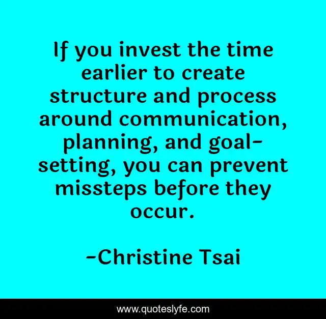 "Christine Tsai Quotes." Quoteslyfe.com, 2025. Sat. 06 Dec. 2025. <https://www.quoteslyfe.com/quote/If-you-invest-the-time-earlier-to-288302>.