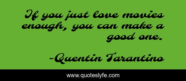 This page presents the quote "If you just love movies enough, you can make a good one.". Author of this quote is Quentin Tarantino. This quote is about good, love, affection,.