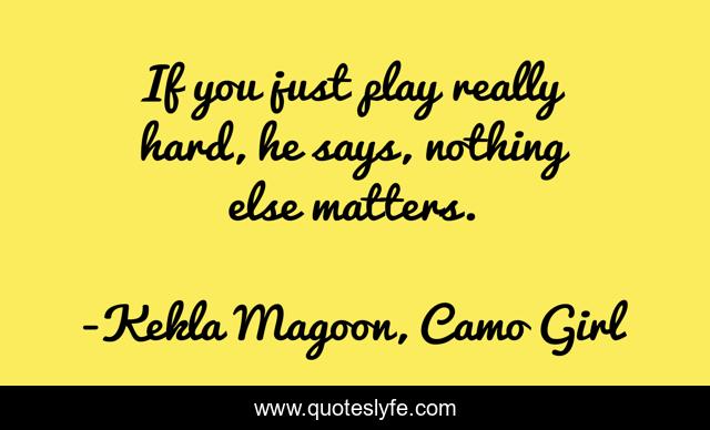 This page presents the quote "If you just play really hard, he says, nothing else matters.". Author of this quote is Kekla Magoon, Camo Girl. .